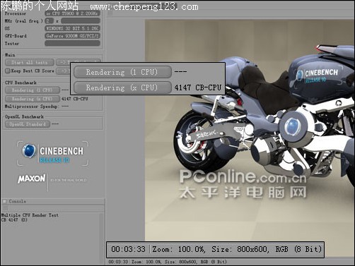 而CINEBANCH R10的成绩,这款Intel Core2 Duo(Merom) T5900(2.2G)得到了4147分,成绩也比45纳米产品低。可以看出45纳米处理器在相同或者相近主频的情况下,性能是有所提升的。