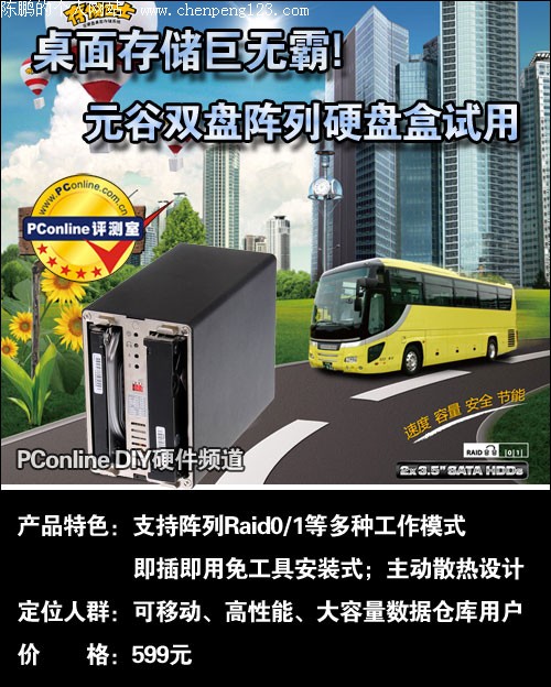 存储巴士A380是知名专业存储品牌-元谷科技最新推出的个人桌面外置存储系统,支持包括阵列Raid0以内的多种工作模式,外部采用eSATA及USB2.0两种模式传输,支持2TB以下及2TB以上两种容量模式,最大支持总容量为4TB。 [1] [2] [3] [4] 下一页