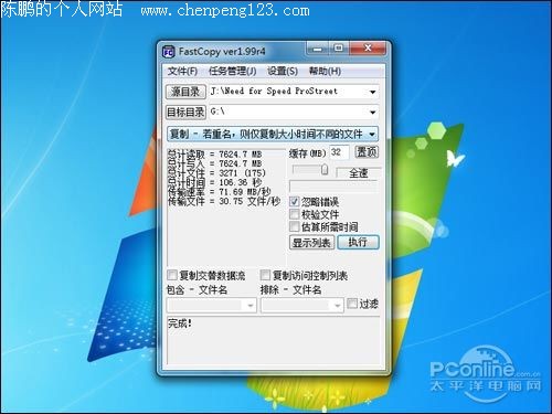 Fastcopy,是一个优秀的文件复制工具,其复制速度比Windows自带的复制功能要快得多,因此该软件也被喻为最快的文件复制工具。我们用它进行文件复制测试,毕竟复制操作是用户平时用得最多的写入操作之一,测试结果能较真实反应出磁盘在复制操作中的性能差距。