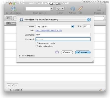 第4步:下载并安装Cyberduck for Mac或WinSCP for Windows。输入如下信息登录iPhone: