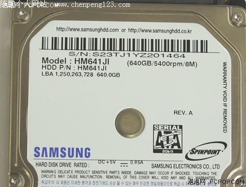 HM641JI,按照三星硬盘的解读方式,HM641JI中,HM代表移动平台用硬盘。转速为5400转,8M缓存,应该说还是主流的参数。三星 640GB银盘笔记本硬盘为内置双碟设计,单碟容量320G。转速为5400rpm,缓存容量达到16M,提高了文件的读取速度,大大减少了文件中转的时 间。磁头采用GMR巨阻磁头技术,减少读取文件时多碟片的伤害。 采用液态滚珠轴承马达技术,具有业界最低噪音,提供业界最好的抗震能力。