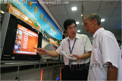 联想工作人员为前来参观的农民朋友做天福系统使用介绍