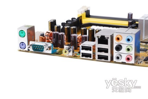 背面输出接口部分,ASUS M3A去掉了如今已经不常用的并口,提供了1 x PS/2 键盘接口、1 x PS/2 鼠标接口、1 x 串口、1 x S/PDIF 输出、1 x RJ45 局域网接口、4 x USB 2.0/1.1接口和8声道音频 I/O接口。