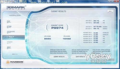 由于更多影响性能的模块已经被整合到了处理器中,所以在基准性能测试方面,7款不同的主板所组建的平台差异非常小,在3DMARK VANTAGE测试中,无论总成绩、GPU还是CPU的得分都相当接近,下面是我们测试平台3DMark Vantage测试的典型成绩。