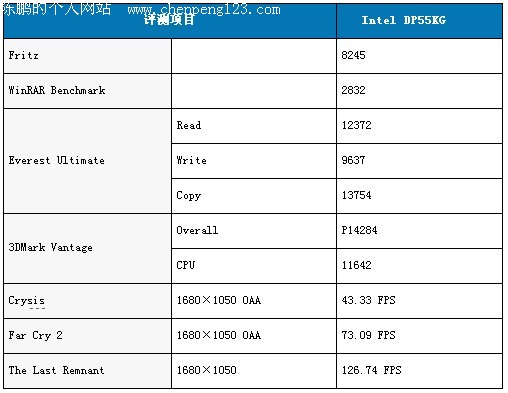 针对Intel DP55KG的整机性能,我们选用了Fritz、WinRAR Benchmark来衡量CPU在该主板支持下的运算能力,以及在Everest Ultimate中进行内存运算测试来考察系统总线的运行效率。另外,我们还选取了3DMark Vantage作为3D性能的基准测试以及最新的DX9、DX10游戏进行测试。