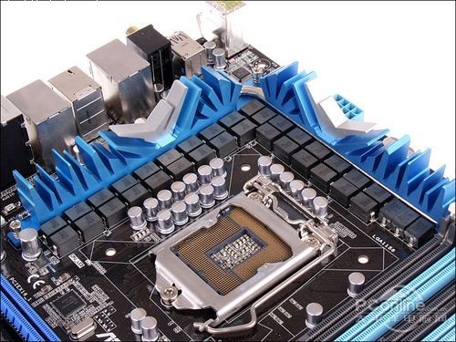 华硕 P7P55D-E Premium主板提供了高达32+3相的CPU供电单元,是目前最强的桌面主板那CPU供电设计,其中3相是为内存控制器供电,并且都使用了固态电容和封闭电感,Mosfet管上也覆盖了散热片。
