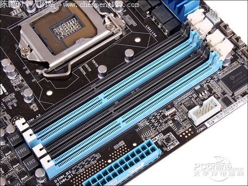 华硕 P7P55D-E Premium主板提供了4条DDR3内存插槽,可以支持DDR3-1066/1333MHz内存,最大支持16GB,并且,主板还为内存部分提供了强劲的3相供电设计。