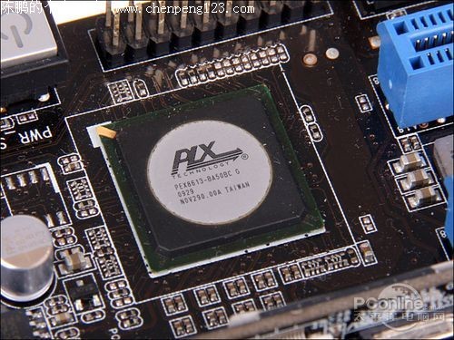 华硕 P7P55D-E Premium主板上的SATA3接口并非P55芯片组提供,而是依靠一颗PLX PEX8613芯片提供了SATA3接口。