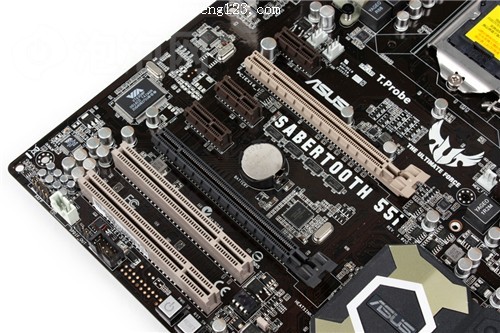 扩展插槽部分,提供了两个PCI-E x16插槽,支持交火和SLI(双x8)。另外提供了3个PCI-E x1插槽和2个PCI插槽。