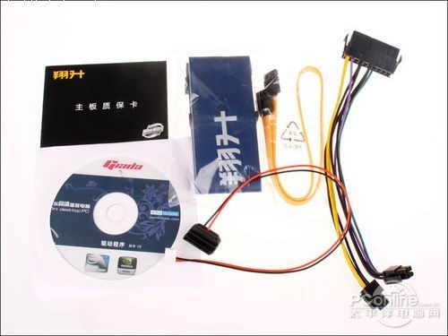 翔升 迷尔N7A主板的附件中规中矩,除了必备的SATA线和光盘等,还提供了必须的电源转接线。用户如果需要使用DC电源,就需要另外购买了。