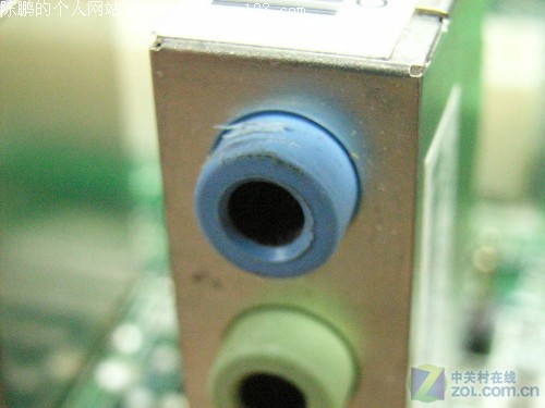 从上面两张图,可以清楚的看到这块主板使用过的痕迹。图3中,PS2键盘明显键盘插拔过的痕迹。图4中蓝色音频插口上方磨痕明显。