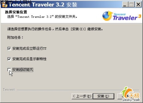 当我们下载TT 3.2并安装时,第一次就会有一个选项,在此,取消“安装超级旋风”(如图3,默认为选中状态)项。之后,我们在TT中单击相应的下载链接时,将会用默认的下载器来下载(如图4)。