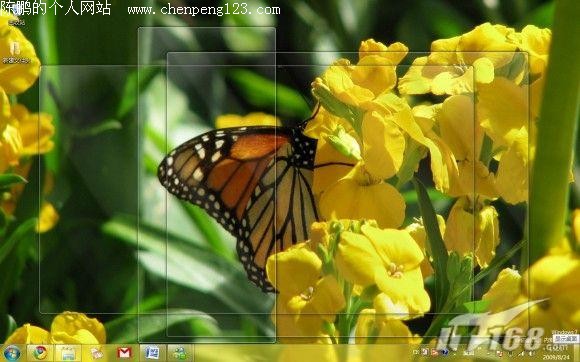 Windows 7的任务栏取消了以前版本系统中的快速启动功能,内置了非常强大的文件显示和启动功能,让用户打开系统更方便、更快捷。在任务栏最右端多出一个高亮的“显示桌面”区域。当鼠标移动到该区域上,可以看到桌面上所有窗口只剩下透明轮廓,这样方便我们查看桌面内容(如图4)。如果在桌面上添加了时钟、内存监视等小工具,通过这功能可以快速查看。当鼠标移走后,即可恢复桌面窗口。
