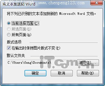 识别好后图片中的文字就可以进行选择了,把需要的内容全部选中,再点击菜单“工具”,将文本发送到Word”,这时会弹出一个对话框,我们选择里面的“当前选择范围”,并把下面的“在输出时保持图片版式不变”选中,完成后点击“确定”按钮,这样就可以在新建的Word文档中看见识别出来的文字(如图4)。