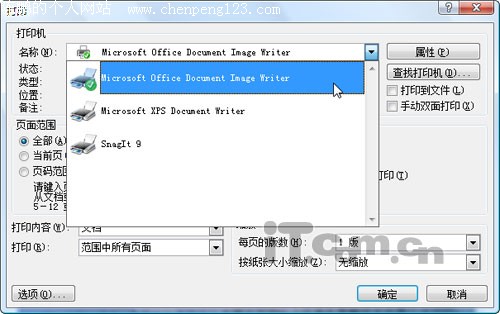 打开Word,点击菜单“插入 → 图片 → 来自文件”,把纸稿图片插入到文档中,再点击菜单“文件 → 打印”,在弹出”窗口的“打印机”下拉列表框中选择“Microsoft Office Document Imaging Writer”,点击“确定”按钮会弹出一个保存窗口,我们设置一下文件保存的路径和文件名,Word会把文档保存为MDI格式的(如果使用的是office2007,则Word会把它保存为TIFF图片格式)。如图2: