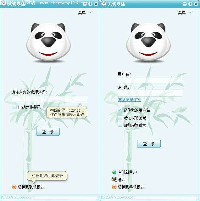 (左图是无须帐号登录界面,右图是使用注册帐号登录界面)