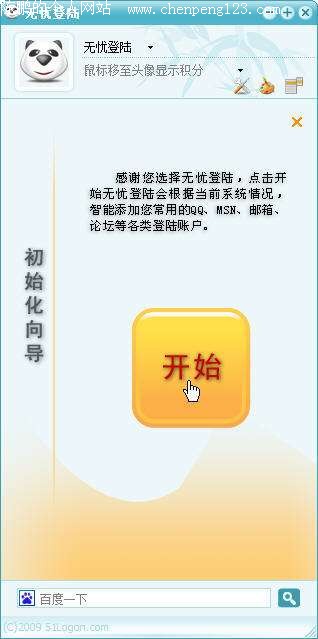 第一次登录软件后,会显示如下图所示的初始化向导界面,无忧登陆会根据当前系统情况,智能添加用户常用的QQ、MSN、邮箱、论坛等各类登录帐户: