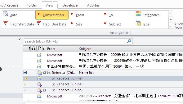 很多朋友有使用Outlook管理自己邮件的经历,其中对于大量的邮件非常的头痛:因为某个原因,来回经过了大量的邮件,而且中间间隔较久的时间、同时中间又夹杂这其他事物的邮件,当需要调看相关邮件时,不得不用邮件的查询功能 ,然后一个一个打开看,非常的烦琐 。