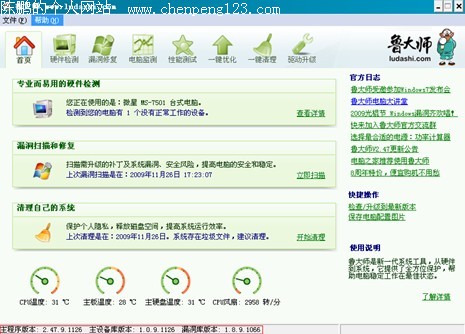 时下,电脑已经成为人们生活、工作甚至情感不可分割的部分,今天似乎很难想象没了电脑世界将变成什么样子。当我们对电脑的依赖性越来越强的时候,电脑毛病也似乎越来越猖獗,各种硬件软件问题、病毒、木马等问题让人伤透了脑筋。鲁大师的出现,着实让各位电脑使用者们欣喜再欣喜,因为它能让电脑免除感冒的烦恼,让大家一起去试试它的效果!