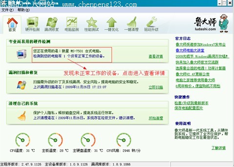笔者使用使用鲁大师有很长一段时间,因此对鲁大师各种功能非常清楚,对于硬件检测功能,2.47版之前的几个版本都是有的,只是新版在功能上做了很大的改进和完善,不仅能对电脑硬件设备进行检测,给出硬件设备品牌、详细参数、使用状况以及厂商信息等,而且能检测到电脑某个硬件是否正常运行,并给出实际的解决办法。有了这个功能,以后再面对女性朋友打来电话询问电脑出问题时,就不用大费唇舌,也不会让身旁女朋友产生误会了。面对异性朋友电话询问电脑没有声音、电脑不能上网、电脑经常闪屏等等问题,我就可以用这样一句话打发他们——下载鲁大师,他能为你解决一切问题!