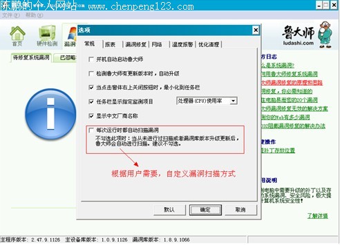 相反,其他类似软件大都会选择用户运行程序时对电脑进行自动扫描,其实扫描是很抢占电脑资源的,每台电脑也没有必要对所有对象进行扫描,而只需根据上次扫描的情况做出选择性扫描。鲁大师的建议这样描述:不勾选此项时,当从未进行过扫描或者漏洞库版本升级更新后,鲁大师会自动进行扫描,建议不勾选。可见,鲁大师的智能扫描功能,能节省不少电脑资源。