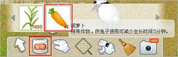1.兔子每吃1个胡萝卜会减少5分钟的生长时间,一个用户的牧场最多被喂食10个胡萝卜;