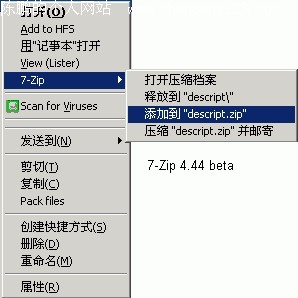 7z格式压缩率高一些,但毕竟zip更为通用。所以,我给别人发文件,用7-Zip,但希望生成zip格式。以前的低版本中,右键菜单无“生成zip”项,必须通过对话框,不太方便。为此,有这样的方法(链接)。而从4.43beta版开始,已经有此选项了。