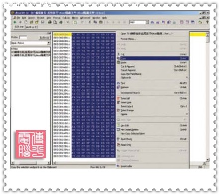 第二步:用UltraEdit32打开那个含有机密文件的RAR文件,此时你会看到该文件的16进制代码,按Ctrl+A键选定整个RAR文件的代码,按Ctrl+C键复制这些代码。