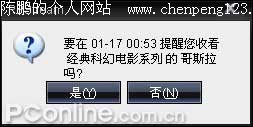 点击影片《哥斯拉》后面的“提醒”按钮将弹出一个确认提醒的对话框(如图3),点击“确认”即可实现提醒功能。这样PPStream将会在节目播放前5分钟提醒我们观看该节目,我们也不需记忆节目播放的时间了。
