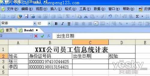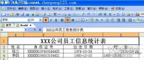作为办公人员,经常要编写关于职工信息档案的表格,其中最常输入的数据就是身份证号码,由于人员众多,输入确实麻烦,一不小心就可能把员工的出生日期弄错了,这可是关系到每个员工的切身利益,如工龄、社会保险金等。要是逐一验证那可是一件让人头疼的事情。下面笔者就教大家一招,通过此方法就能够很快查找出Excel表中错误的身份证号码。下面以“XXX公司员工信息统计表”为例(图1)。