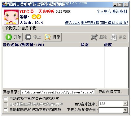 程序按网友们的反馈的信息,调整了菜单。原来的控制菜单直接控制播放模式,并且把下载菜单直接放在列表窗口上的鼠标右键上,避 免下载音乐时需要打开子菜单的问题;同时优化了下载模块,以前偶尔出现的某些用户下载失败问题不会再发生了;同时添加了Wma转MP3功能 ,可以方便的把下载的非MP3的音乐自动转换成MP3的格式,可以方便的放置到MP3播放机里。
