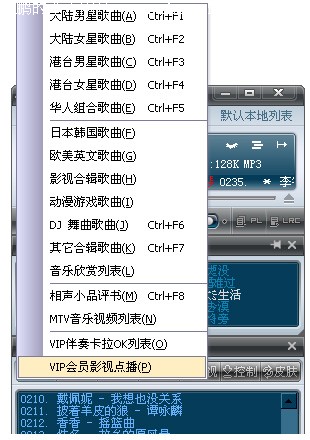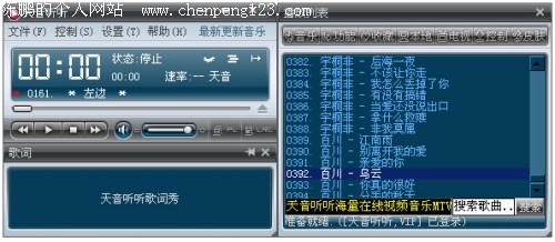 由于数量小,所以把有网络音乐的[网友原唱翻唱]合并到了其它音乐列表中。新添加了[MTV音乐视频列表]、[伴奏卡拉OK列表 ]与[会员影视点播列表],三个新列表的添加代表着天音听听增加了大量的多媒体内容;同时还在功能菜单中添加了一个[历史播放列表],在这 个列表中,将自动添加用户播放的所有的音乐,以便于方便快捷的找到自己曾经播放过的喜欢的音乐。