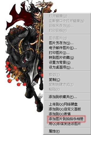 当我们在网上遇到心动的图片,你就可以用鼠标在图片上面单击鼠标右键,在快捷菜单中选择“添加图片到拍拍乐相册”或直接把图片拖到你所选项的相册时里面,这样你想要的图片就被自动添加到你的拍拍相册里了.真是方便到极点,生活因你而变(图4图5所示)