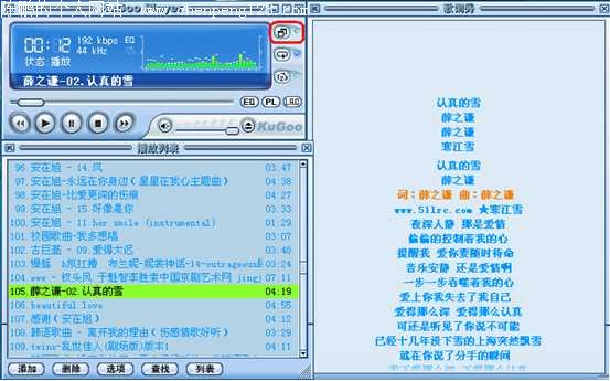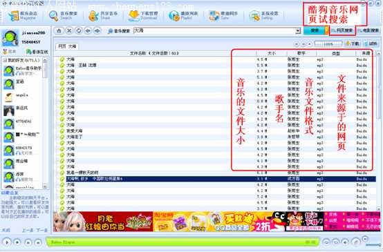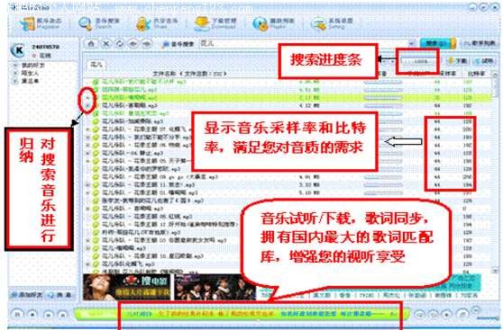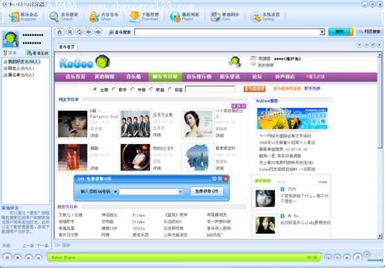 音乐试听的问题一直困扰着爱好听歌的朋友。KuGoo 酷狗的诞生着实解决了不少这样的麻烦。它的最新版本V3.0系列,大小为6.02M,可以在 www.kugoo.com 下载。 最新的V3版本给予用户更多的人性化功能,实行多源下载,提升平时的下载速度,经测试,最快可以达到500K/S,更快更高效率的下载搜索的歌曲。国内最先提供在线试听功能,方便用户进行选择性的下载,减少下载不喜欢的歌曲哦。娱乐主页每天会提供大量最新的娱乐资讯,欧美、中文和日韩的最新大碟,单曲排行下载让你轻松掌握最前卫的流行动态,充分享受精彩娱乐生活。 现在酷狗的V3版本里可以,在登录框中有两种方式登录KUGOO(酷狗),第一种是从用户名来登入酷狗,另一个是从注册的酷狗帐号来登入,这样大大的方便了用户的登入。