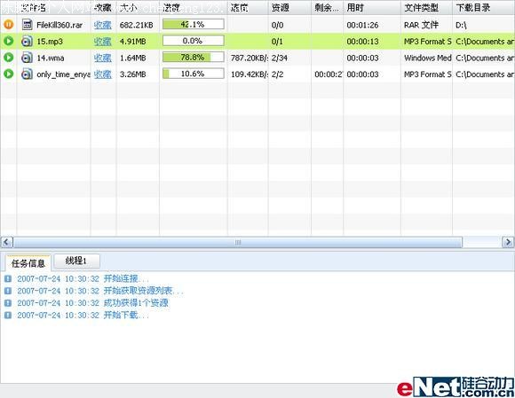 超级旋风于7月5日推出1.4beta01版后又于7月24日再次更新,推出了1.5beta01版。看着这款下载软件一路走来,我们欣慰地发现“超级旋风”在经历了密集更新和快速发展后,变得更为成熟了。打开更新列表细看端倪,其技术上的提高与界面上的细腻处理双向并存,每项内容的更新与提高都让使用者能切实体会到一种悉心的关注。 笔者使用了几个版本的超级旋风,发现软件的每次更新都为提高速度做出了努力。这里所说的速度包括多个方面。比如文件体积小,只有2.26MB,无论是下载还是安装都十分快捷;还有资源下载很快,超级旋风支持多种、多个任务同时进行,每个下载中的任务还使用多地址、多线程下载,速度比较稳定;而且它还支持断点续传、线程连续调度优化等,这些都为使用者快速取得资源提供了技术方面的保证。