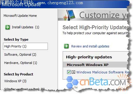 当然,测试包还整合了Service Pack 2 至今的升级程序,通过 Windows Update 可以看出,高优先级中除了每月更新的 Windows Malicious Software Removal Tool 以外的补丁均已安装,而可选升级程序中也仅只有 Microsoft .NET Framework version 1.1 和 Microsoft .NET Framework 2.0: x86 两个程序,之前的可选程序均已整合进系统,Microsoft Update 并没有直接整合进系统.
