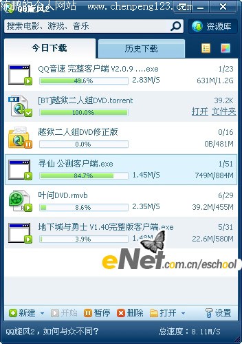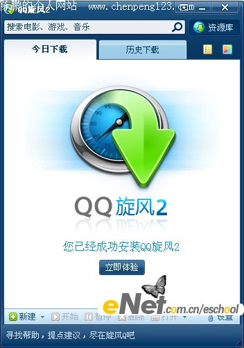 QQ旋风2是腾讯公司2009年推出的新一代互联网下载工具,采用新的下载引擎,新的左右分栏下载模式,界面清爽简单。 新的QQ旋风2具备以下特点: QQ旋风2,清爽下载新体验! 1.全新LOGO,更富质感