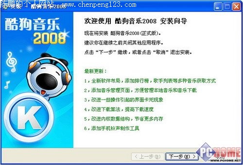 酷狗发布5.300版 酷狗音乐2008作为全球最受欢迎的音乐播放软件,不但拥有着良好的音乐播放体验,同时,更拥有上千万首网友共享的音乐文件,以及高速下载的功能,一直是广大网民播放和下载音乐的第一选择。酷狗音乐2008如同浩瀚的音乐海洋,但如何在这个海洋中找到更适合自己的歌曲?又如何将海洋中的歌曲制作成心爱的手机铃声呢?近期推出的酷狗音乐2008 V5.300版就可以帮助广大用户解决这个问题。 该版本是酷狗音乐2008版发布以来最大的一次更新,更新内容包括:更改了软件布局,使得歌曲推荐更人性化更丰富全面;修改了音乐管理方式,用户操作软件将更加得心用手;添加手机铃声制作工具,用户可以制作自己满意的手机铃声;优化了系统内核,占用资源更少……等等一系列的更新,使得酷狗音乐软件变得更好更强大,也更成熟起来。下面,就让我们一起来预览一下这个令人心动的版本: (一)软件安装 下载最新发布的酷狗音乐2008 V5.300版,双击安装文件开始安装(如图1所示)。