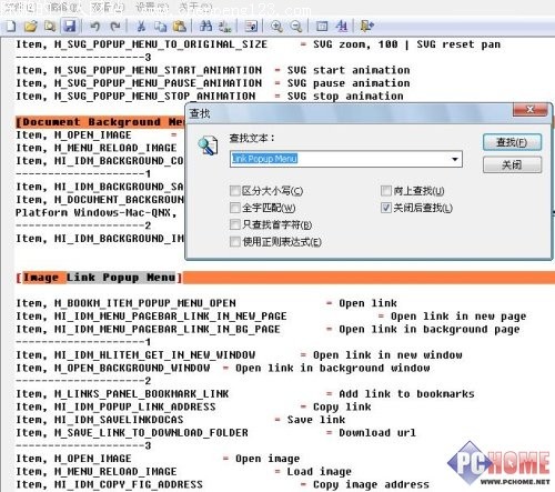 我们这里选择记事本打开,选择编辑-查找,输入"Link Popup Menu"(不含引号),
