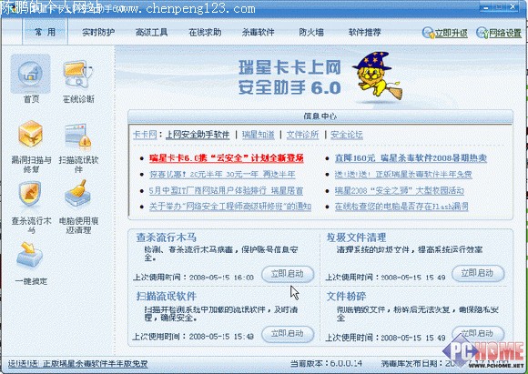 360安全卫士 5.0β 整合免费杀毒组件 此前曾传言奇虎360将进军杀毒市场,没想到传言很快得到证实,在最新布的360安全卫士 5.0 Beta中,杀毒模块被正式整合,并被命名为360杀毒(图1、图2)。除了整合360杀毒组件之外,新版漏洞补丁检测修复开始支持Windows2003系统,同时还新增自动检测设置,在不打开360安全卫士主界面的情况亦可了解系统详情。 目前360杀毒的主要功能: 1.反病毒和反间谍软件,支持主动侦测技术来阻止不明的病毒,以及实时监控和阻止潜在的间谍程序威胁。 2.反钓鱼欺骗,可以通过过滤来防止钓鱼攻击行为,降低身份信息被窃取的风险。