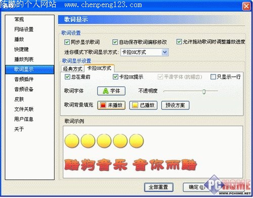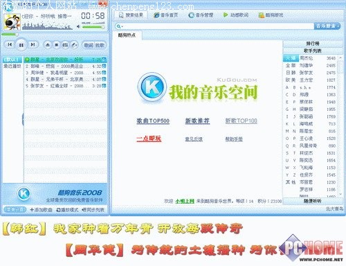 酷狗音乐歌词秀 酷狗音乐2008的"卡拉OK"歌词秀功能,在经历几次升级之后,已经越来越趋向成熟,操作起来也越来越简单,同时还兼具个性化设置和人性化功能几大特点,是目前体验值最好的歌词显示技术之一。今天,我们一起来体验一下这个号称全球首款的"动感歌词"卡拉OK歌词显示技术: 一、"卡拉OK"初体验 下载安装最新版的酷狗音乐2008软件,双击打开桌面上的"酷狗音乐"软件后,播放任何一首歌曲,即可在软件的下面看到酷狗音乐软件的卡拉OK歌词显示。该功能使用了酷狗独创的"动感歌词"技术,可以实现逐字精准定位,笔者使用时发现其精准度非常高,基本能够赶上在KTV的歌词质量。如图1