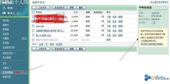 QQ邮箱总是针对邮箱等级高的用户推出内测服务(非QQ等级),只有常用QQ邮箱收发邮件的用户才有这些服务,所以希望不要又有人说“我怎么没有?!”也不希望看到好久之前就在内测的一些服务能被说成:“惊爆!QQ邮箱推出WebQQ,让人很郁闷.这次介绍的是QQ邮箱文件中转站功能,今天下午登陆邮箱,发现中转站的项目后面多了红字的“(极速版)”,点击进去一看,里面有详细说明:“您的中转站已升级至极速版,追求网络存储服务中最快的上传速度(目前还属于小范围试用阶段).”