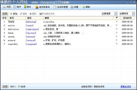 生词本 传统学英语是使用单词卡之类的笔记本,相当麻烦和繁琐,不利于快速的索引和查询,虽然现在电脑是学习英语的好工具,但巨大的安装包和体积也让我们不得有些烦恼,毕竟很多时候,我们可能不需要那么强大的功能,或者说我们只需要日常记忆单词,巩固自己的词汇量。 不同的需求导致单一的产品并无法很好的满足我们,而且目前学习英语软件最大的问题在于仅仅是一个学习工具,而学习外语又不得不随时去查询单词,这就不得不用到词典的帮忙,想想吧,看着电脑,手里却抱着本词典,确实有些囧,看来虽然电脑方便了我们,但是也还是有不尽如人意的地方。