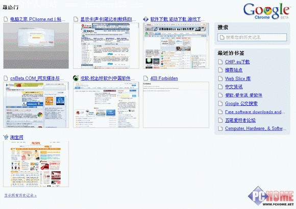 谷歌Chrome浏览器 9.2 强势出击 美国时间9月2日Google正式推出了其进军浏览器市场的Chrome浏览器,其主要特性主要有以下几点(详细内容可以浏览本站‘谷歌浏览器Chrome 首发详尽评测 ’一文): 1、Chrome浏览器基于开源的Webkit,其中包含谷歌Gears。 2、Chrome提供了浏览器扩展框架,可以制作与Adobe-AIR类似的混合应用。 3、包含V8 Javascript虚拟机,这个多线程的虚拟机可以加速Javascript的执行。 4、Chrome支持多标签浏览,每个标签页面都在独立的“沙箱”内运行,单个标签页面的崩溃不会导致其他标签页面被关闭,有效解决假死问题。但可能导致内存资源占用较大的情况,但将降低整体内存资源的占用。 5、具备隐私模式,可以让用户无需在本地机器上登录即可使用,这个功能与微软最新版本IE中的Incognito类似。