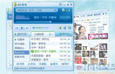 QQMusic2008Beta03 更新: 1.管理面板集合本地珍藏音乐,统一管理,方便快捷; 2.整合旋风下载组件,提供更丰富的下载资源; 3.优化QMP播放控件,资源占用更少,听歌流畅不缓冲。