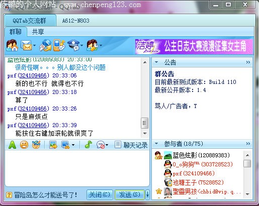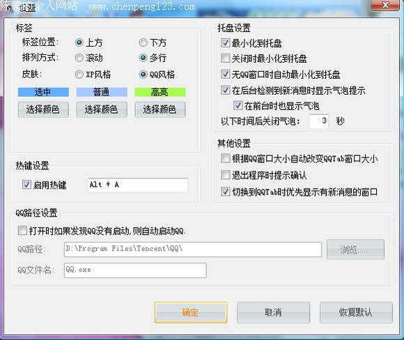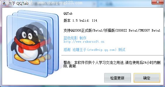 让QQ聊天窗口像Maxthon那样以标签方式存在的小软件。这是到目前为止最大的一次更新,加入了很多新特性,比如:右键+滚轮切换标签。同时,修复了1.3、1.4频繁出现崩溃的问题。另外多了一个 QQTab.dll,这是一个辅助dll,用来获得鼠标的相关信息,国内有些杀毒软件可能会报病毒,纯属误报。还是那句老话,如果您认为杀毒软件的建议是 正确的,您有权拒绝使用本软件,谢谢。花了我好多心血,希望大家喜欢。