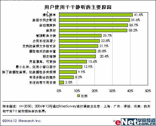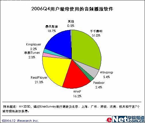 调查显示,在线音乐下载已是超过八成网民的主要音乐获取方式。而看似不起眼的音频播放软件市场,依旧是竞逐激烈。在2006年,艾瑞咨询的调查分析得出了若干有趣的结论。从中我们可以看到,国产软件已经占据了上风,满足用户需求仍是竞争的有利武器,而软件的专业性和特色功能则成为消费者选择的重要理由。(本文表格和数据均来自艾瑞咨询2006年音频播放软件市场调查报告)