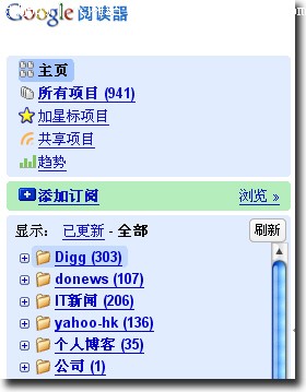 最近Google Reader的更新真的很多,自从上一次的更新增加了搜索框和界面UI变化之后,这次再来一个重大更新,推出多国语言版。事实上中文的登录界面前两天就出现了,但真正的中文版已经在今天推出了, 下面是截图: