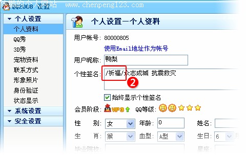 第二步:在个性签名的编辑区域,请在QQ签名的最前面输入“/思念/”或 “/祈福/”,编辑完毕后点击“确定”按钮,即可在QQ主面板个性签名中生成对应的“ ”或“ ”标识,传递所有QQ用户的祝福。 /思念/ 对应 ,飘扬丝带,寄托思念; /祈福/ 对应 ,点燃希望,祝福祈祷;