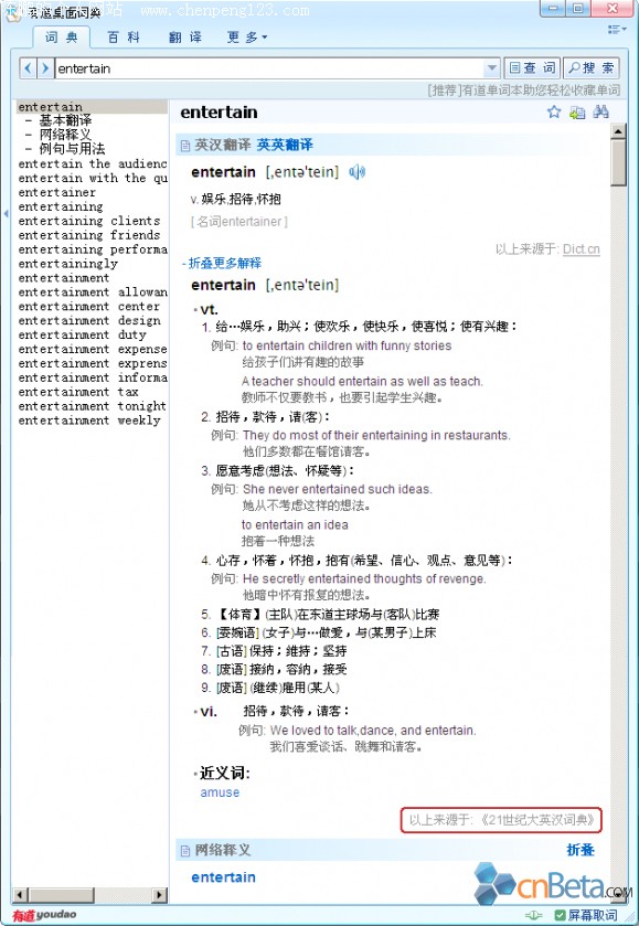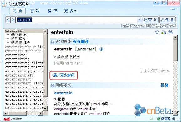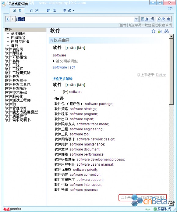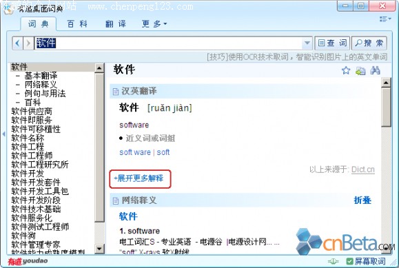 有道桌面词典已经发布了两个beta版了,最近陆续有关于有道2.0正式版的声音出来,也有一些个人博客和忠实用户收到了有道2.0正式版的Preview版本进行内测。 有道桌面词典2.0beta版采取了全新的界面设计,更加web2.0化,新增加了百科查询、全文翻译、OCR取词、网络自动同步单词本等功能,这次正式版发布,又为用户提供了两本英汉汉英的权威词典供查询,弥补了之前在词汇深度和权威性方面的差距。